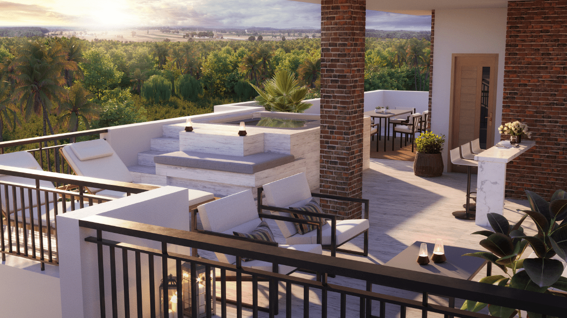 Sus piscinas, plaza y locales comerciales cercanos como supermercados, restaurantes y bares, acceso a nuestro club de playa y su estilo mediterráneo, convierten este proyecto en su alojamiento ideal para vivir y/o invertir en el corazón de Bávaro. Este desarrollo se beneficia de CONFOTUR, un incentivo del gobierno dominicano para inversionistas: la exención del impuesto a la propiedad por 15 años y exención del impuesto de transferencia.